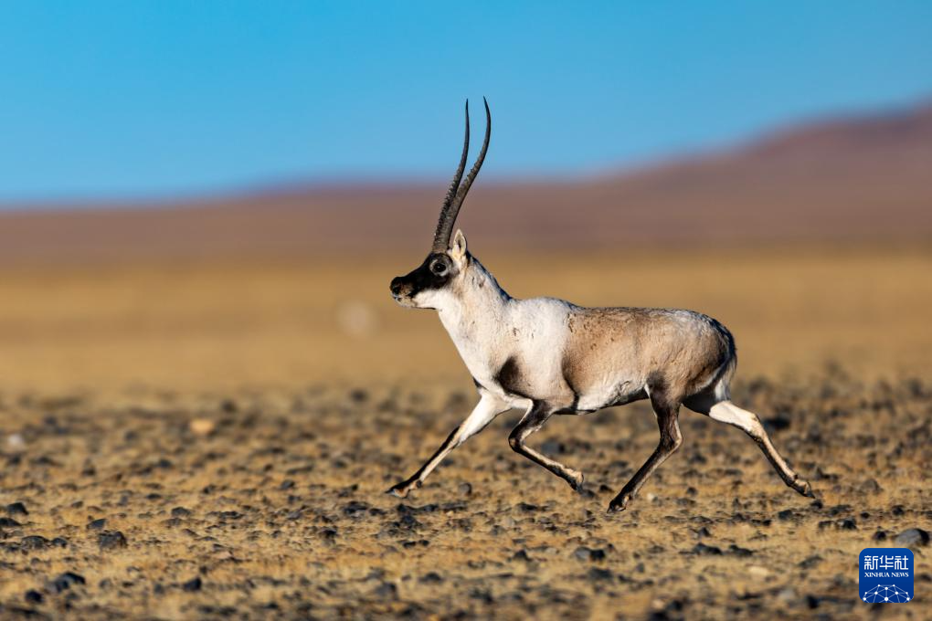 一頭雄性藏羚羊在羌塘國家級自然保護(hù)區(qū)的草原上奔跑(12月4日攝)。新華社記者 姜帆 攝
