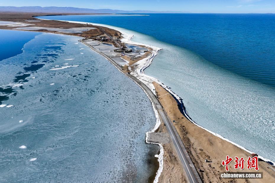 12月16日,青海省海南州,冬日青海湖冰推景觀吸引游客駐足拍照,定格“高原藍(lán)寶石”冬日美景。圖為航拍青海湖冰推景觀。(無人機(jī)照片)中新社記者 薛蒂 攝