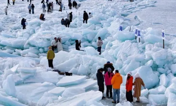 • 青海湖藍(lán)冰引游人打卡