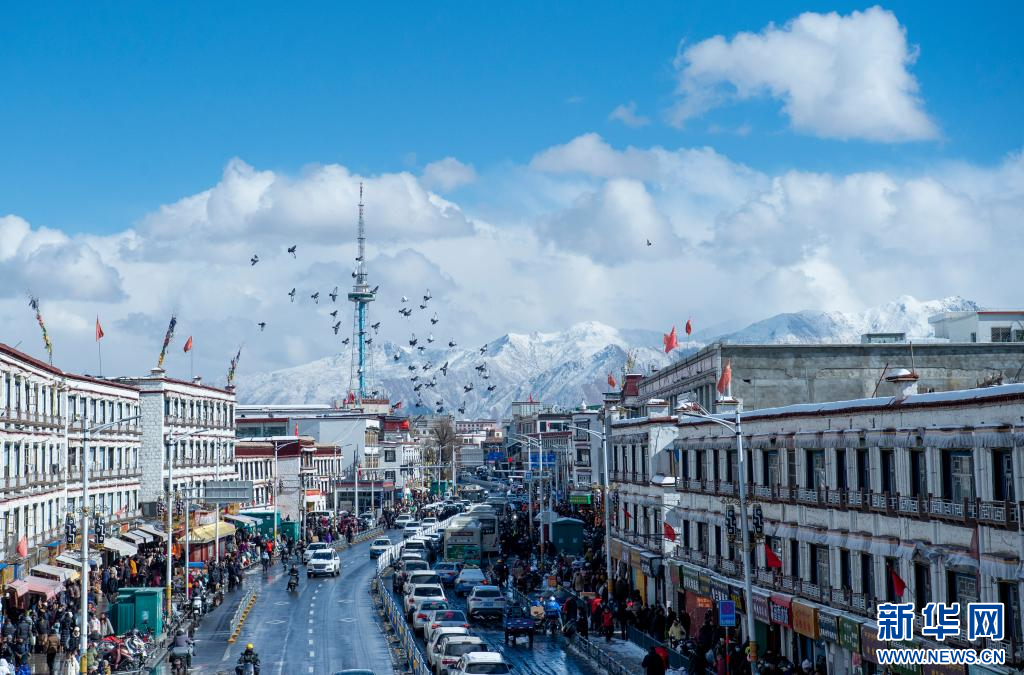 1月18日拍攝的雪后拉薩街頭。新華網(wǎng) 旦增努布 攝