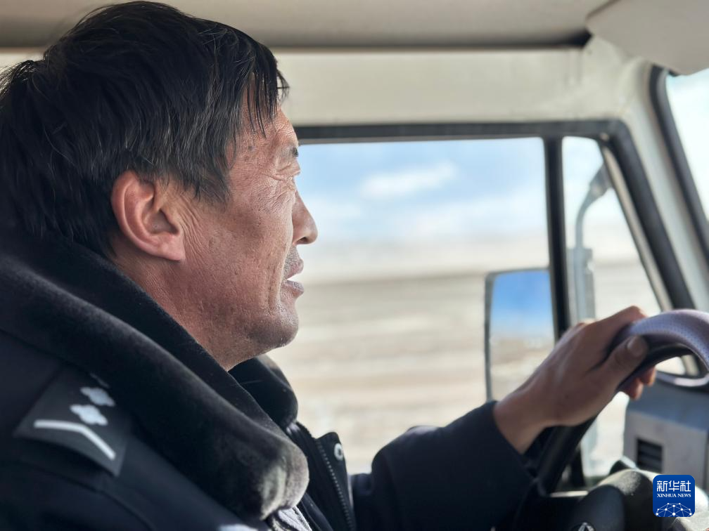 簡單休整后,巡山隊開始了對卓乃湖區域的日常巡護。可可西里遍布湖泊,在卓乃湖附近巡護,車輛不得不在冰凍的河灘上緩慢行進。