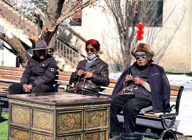 早晨11點多,在海拔4000多米的西藏自治區日喀則市拉孜縣,厚厚的積雪覆蓋了路面和車輛,室外溫度達零下十幾度,走進特困人員集中供養中心,三三兩兩的老人們坐在院子里的板凳上曬著太陽,開心地聊著天……