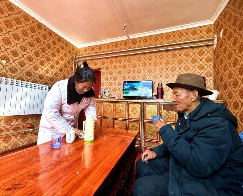 瓊拉是一名孤寡老人,來集中供養中心已經十幾年了,這里不僅有自己的房子、成套的家具,也有了照顧她的“女兒”,“這里就是我的家,我‘女兒’叫央珍,她就像照顧自己父母一樣照顧我的生活起居。”