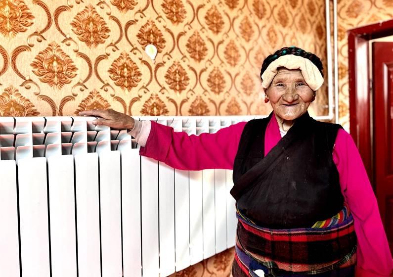 瓊拉老人摸著暖氣片笑容滿面。瓊達卓嘎攝