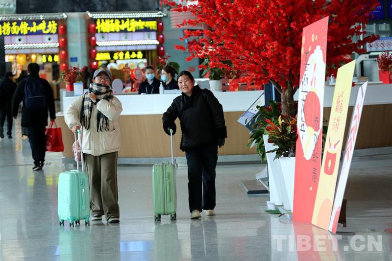 資料圖:拉薩貢嘎機場內節日氛圍濃厚 游客愉快出行