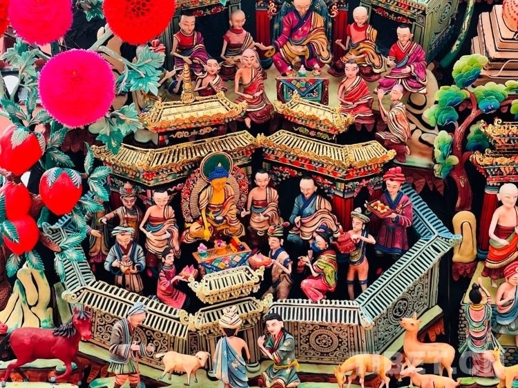 酥油花是一種用酥油塑形像物的特殊技藝,也是“塔爾寺藝術三絕”(酥油花、壁畫、堆繡)之一,2006年經(jīng)國務院批準被列入首批國家級非物質文化遺產(chǎn)名錄。酥油花以酥油為原料,做成佛像、人物、飛禽走獸、花草樹木等,塑造題材多為佛教故事、歷史人物、民間傳說等,工藝高超、栩栩如生、巧奪天工,具有很高的藝術水平和獨特的藝術魅力。