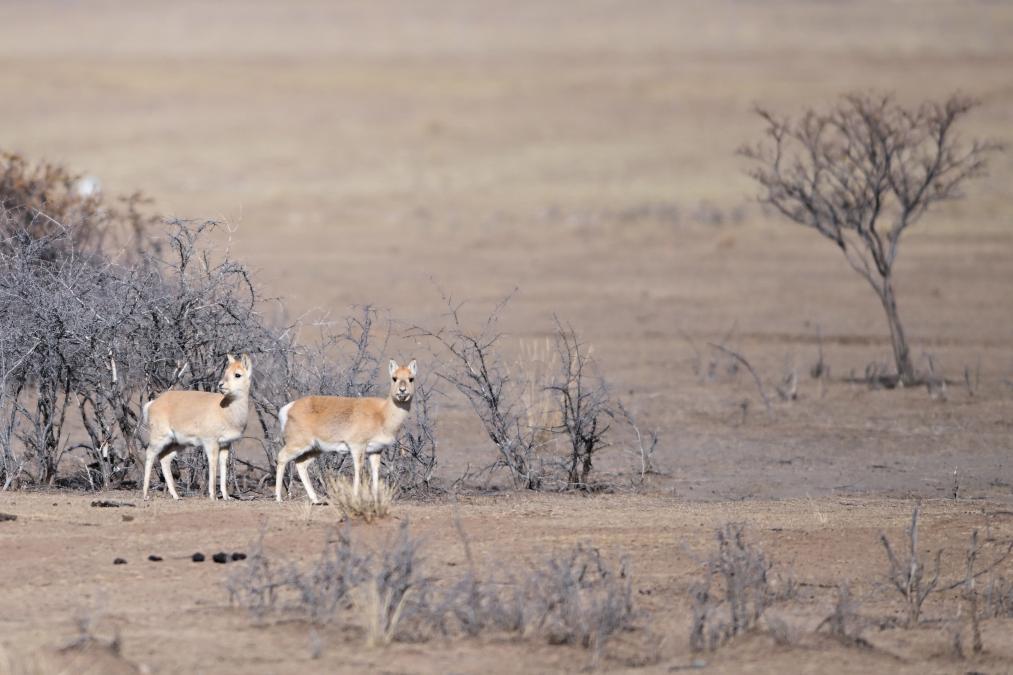 1月24日,青海省海北藏族自治州剛察縣哈爾蓋鎮境內的草原上的普氏原羚。新華社記者 張龍 攝