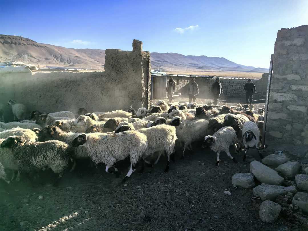 太陽翻過雪山,灑滿西藏日喀則市崗巴縣崗巴鎮雪村的大地時,穿著羊皮袍子、皮膚黝黑的扎西多杰準時打開了圈門。隨著此起彼伏的“咩咩咩”聲,羊群就像開閘的洪水般傾瀉而出,踏出滾滾塵煙。