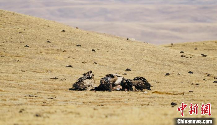 中國(guó)藏族網(wǎng)通訊 日前,在地處柴達(dá)木盆地的青海省海西州境內(nèi),攝影愛(ài)好者拍攝到成群高山兀鷲集中進(jìn)食的畫(huà)面。