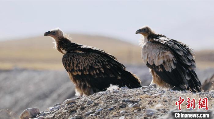 圖為兩只高山兀鷲四處打望。蔡海勇 攝