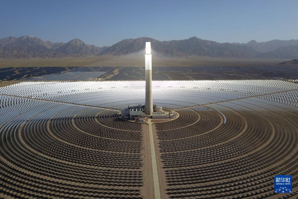 這是2022年6月8日在海西州德令哈市光伏(光熱)產業園拍攝的光熱電站(無人機照片)。新華社記者 范培珅 攝