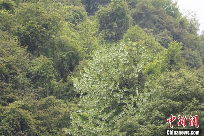 初夏時(shí)節(jié),四川省阿壩州松潘縣小河鎮(zhèn)雙河村西溝境內(nèi)的野生珙桐迎來(lái)盛花期,上萬(wàn)株珙桐花在山間次第開(kāi)放,白色的花朵迎風(fēng)飄動(dòng),猶如漫天飛舞的白鴿。西溝的野生珙桐花分布面積達(dá)8公里,共2萬(wàn)多畝,是目前阿壩州發(fā)現(xiàn)面積最大的珙桐林。