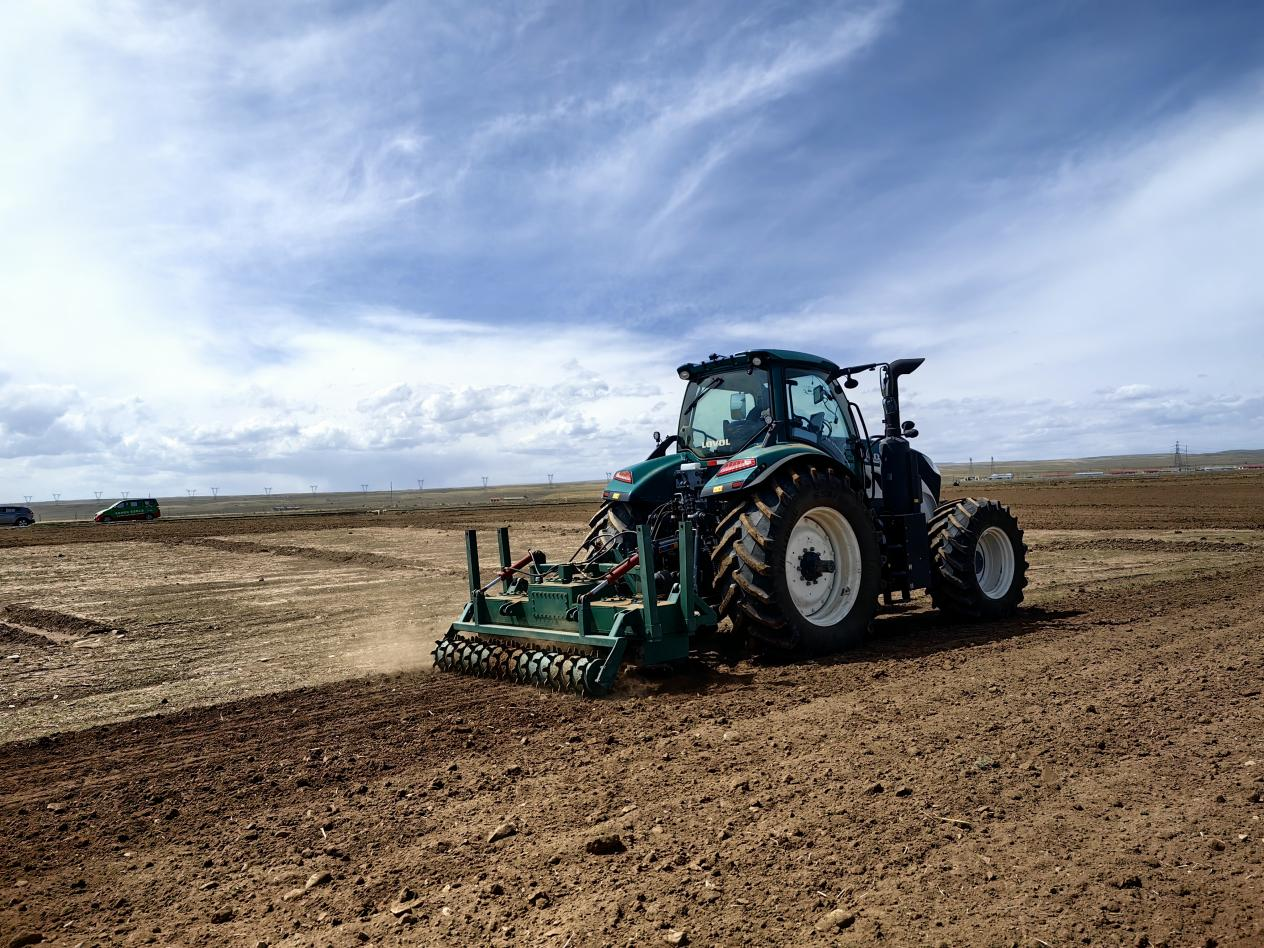 剛察縣泉吉鄉新泉村正在運用粉壟機進行田間作業。剛察縣委宣傳部供圖