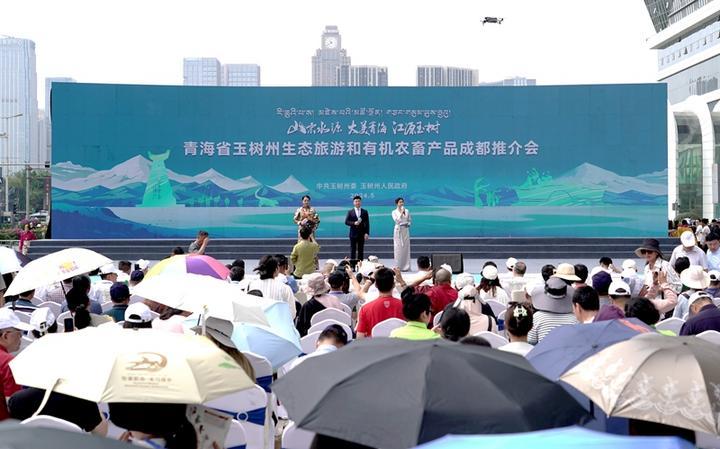 中國藏族網通訊 5月21日,青海省玉樹藏族自治州生態旅游和有機農畜產品成都推介會在四川省成都市環球中心廣場舉行。