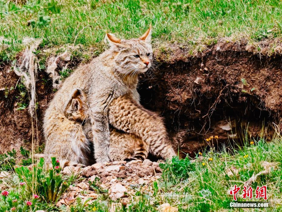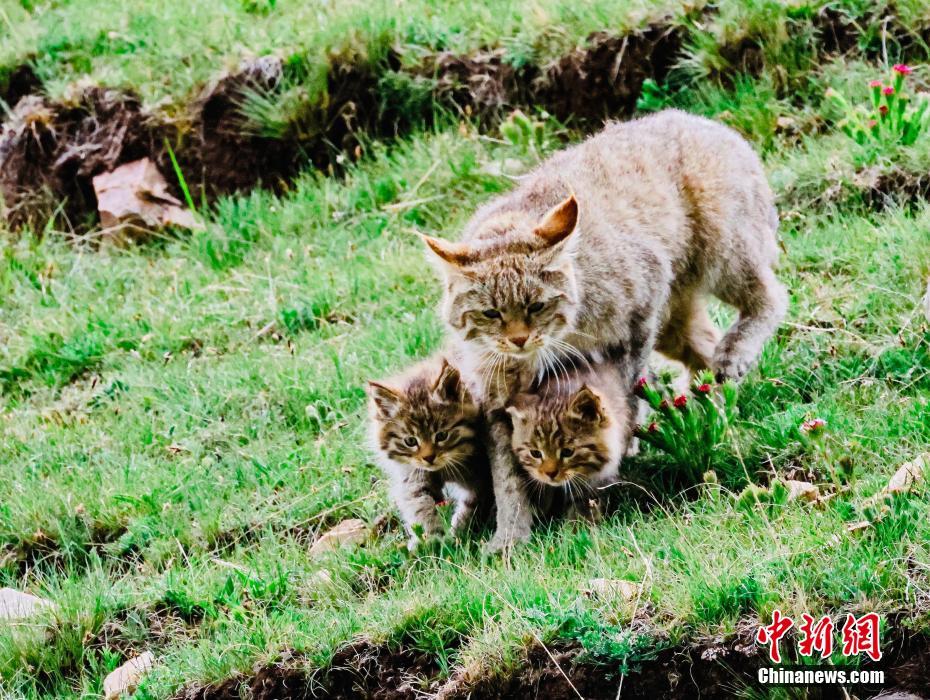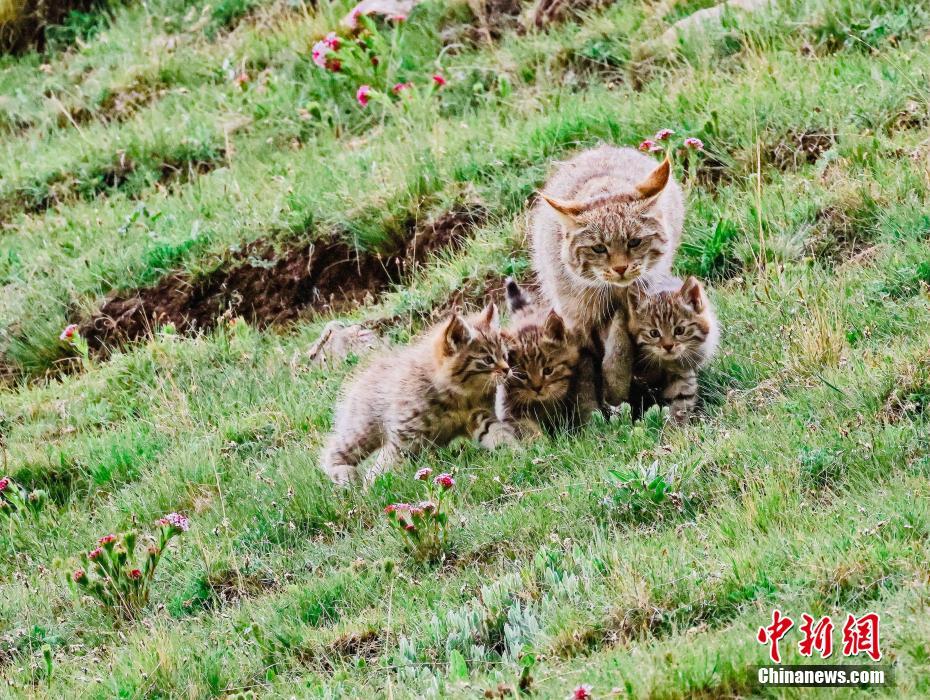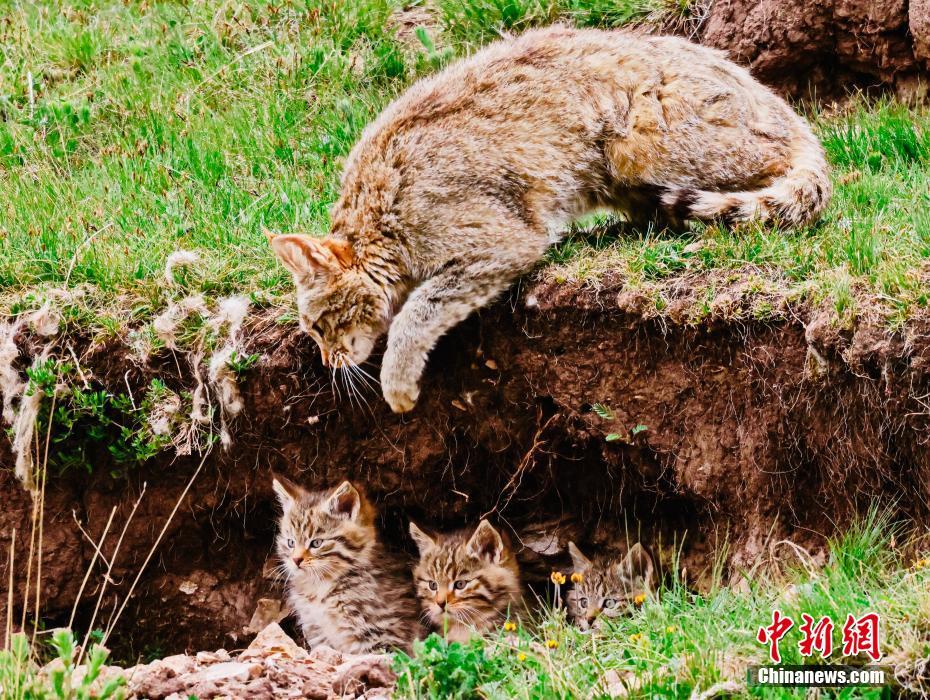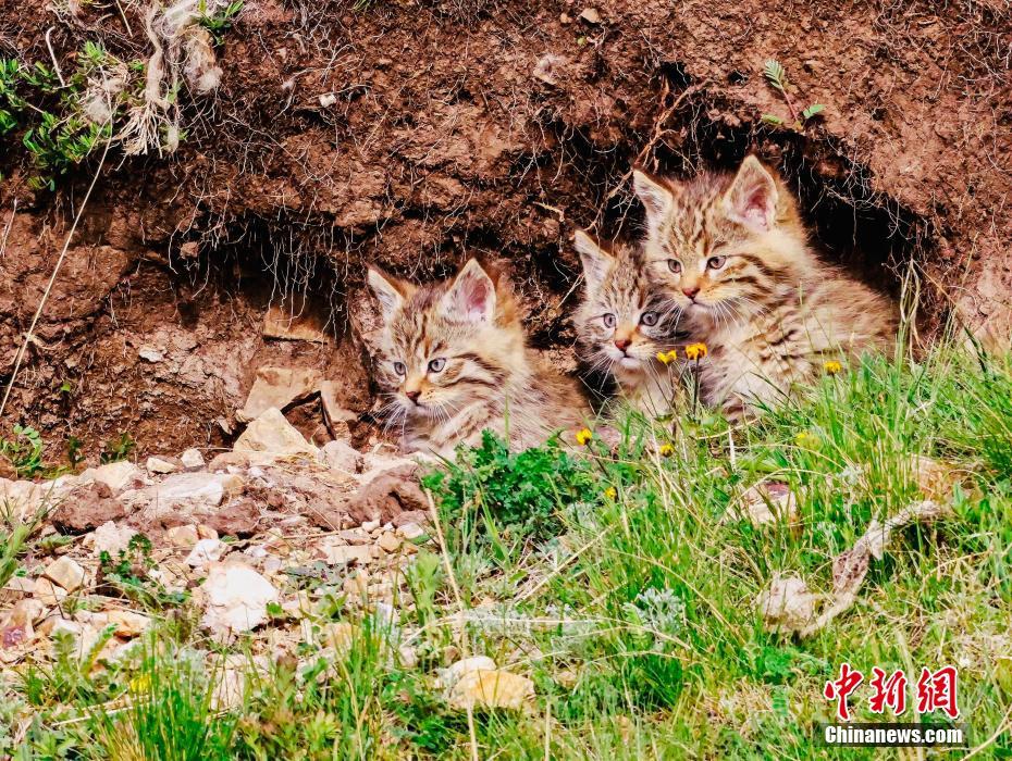 6月15日,盛夏時節,在青海省海北藏族自治州海晏縣哈勒景蒙古族鄉查庫太草原上,攝影愛好者拍攝到荒漠貓幼崽出窩“踏青”的畫面。畫面中,荒漠貓幼崽或是與媽媽嬉戲玩耍,或是“哥仨”追逐打鬧,或是練習捕獵技巧,甚是呆萌可愛。荒漠貓分布于青藏高原東部,是中國特有的貓科動物,國家一級重點保護野生動物。
