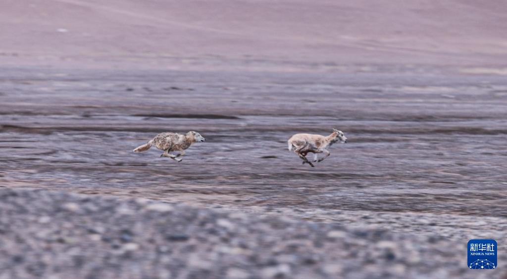 6月14日,一只野狼在追逐一只懷孕的母藏羚羊(視頻截圖)。新華社發(達瓦多吉攝)