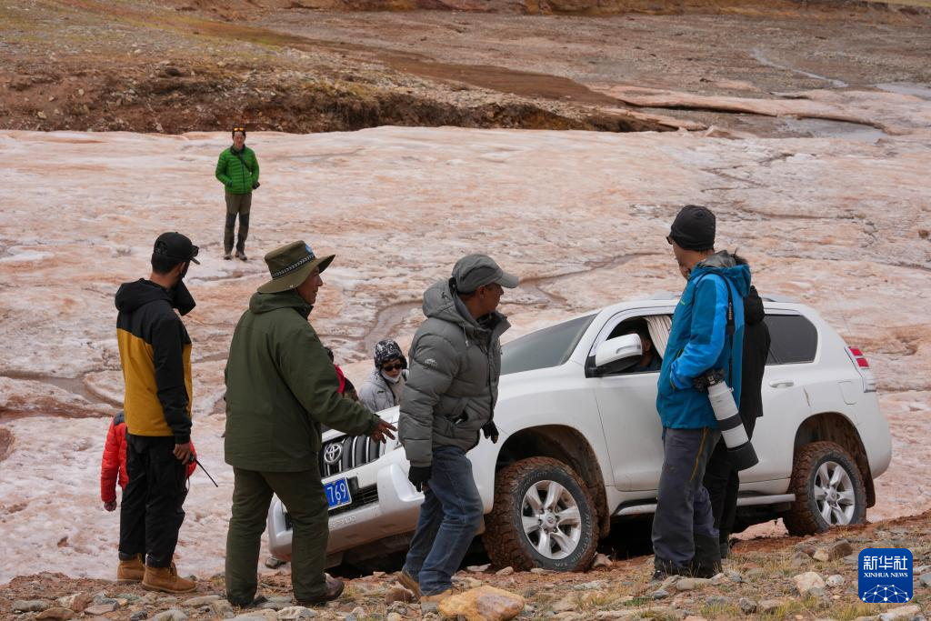 6月15日,車輛在羌塘國家級自然保護區內過冰坡遇困。新華社記者 旦增尼瑪曲珠 攝
