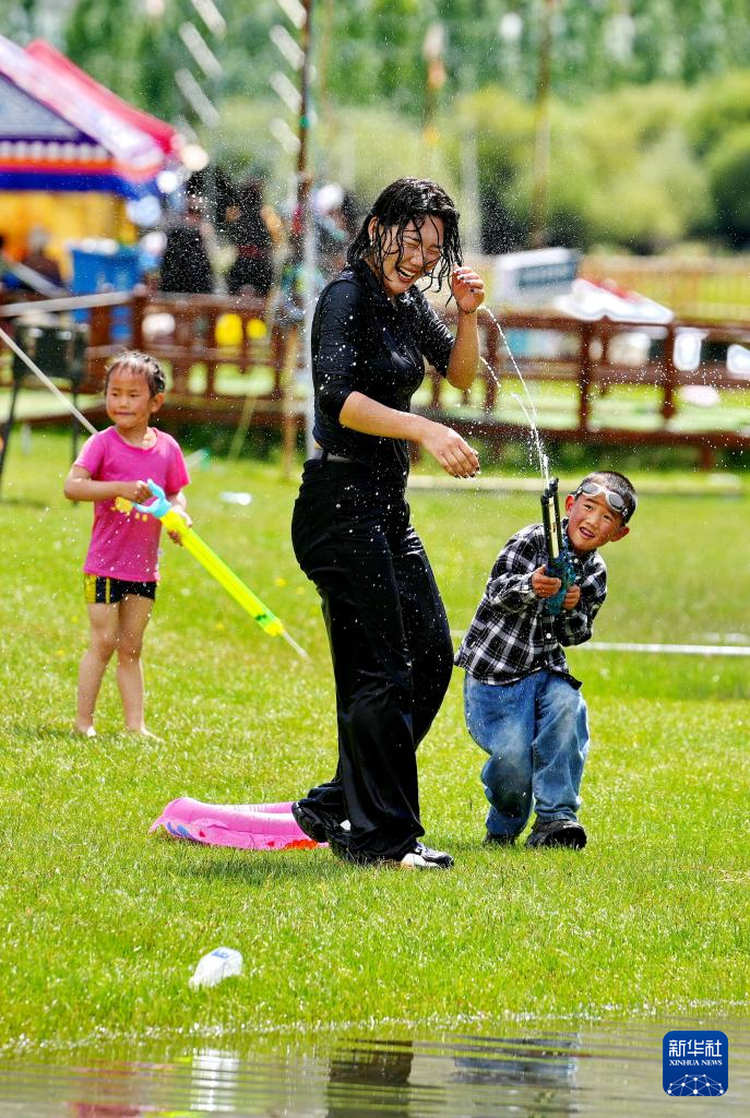 7月14日,大人和孩子在“神秘樹(shù)林”玩水。新華社記者 張汝鋒 攝
