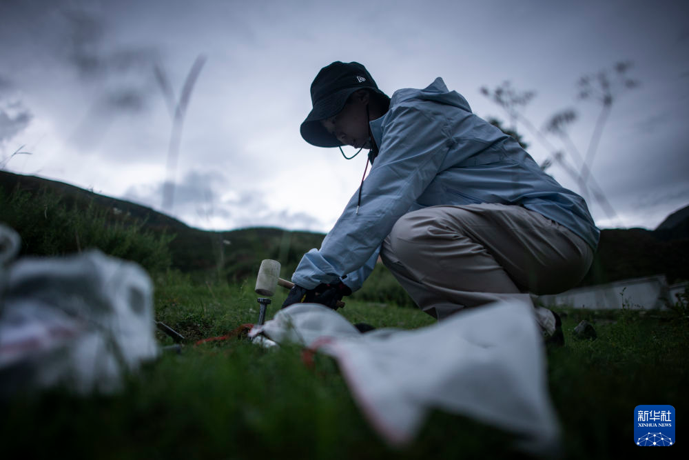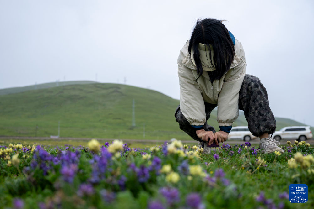 7月23日,長江科學(xué)院水資源綜合管理研究所的程淑婕在通天河曲麻萊河段測量土壤溫濕度。新華社記者 伍志尊 攝