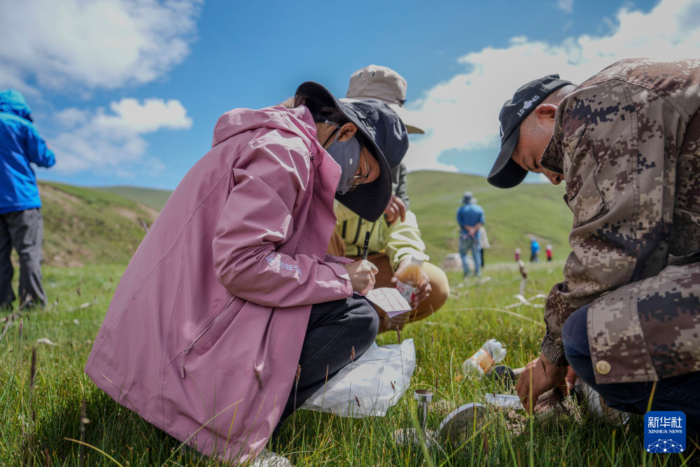 7月23日,長江科學(xué)院河流研究所的劉玉嬌(中)在聶洽曲收納采集的樣品。新華社 杜笑微 攝