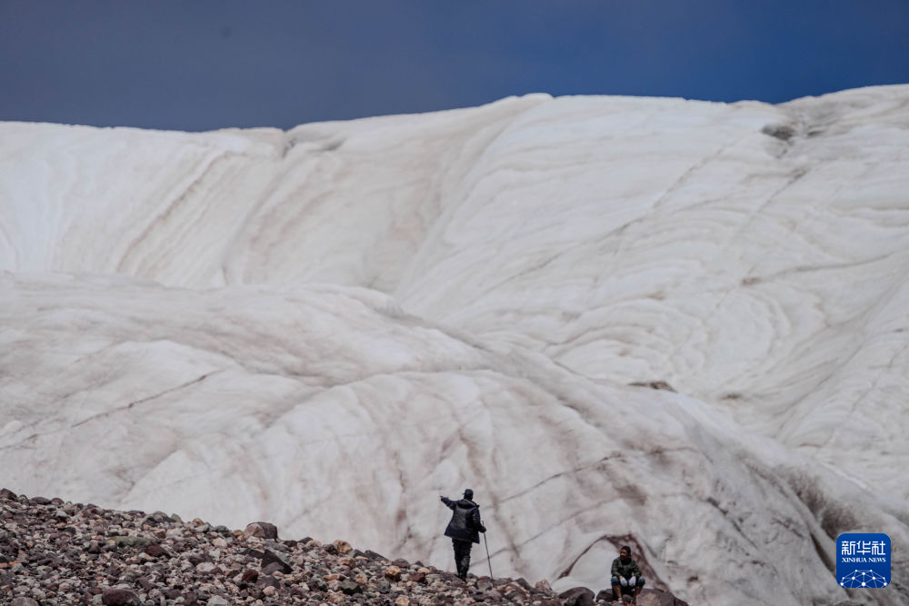 7月25日,在冬克瑪底冰川,科考隊員在探測冰川。新華社記者 伍志尊 攝