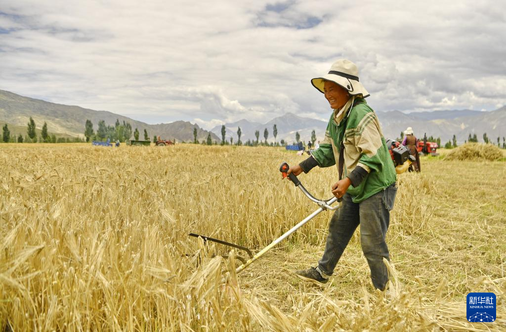 7月31日,山南市扎囊縣扎其鄉朗賽嶺村村民在收割青稞。新華社記者 張汝鋒 攝