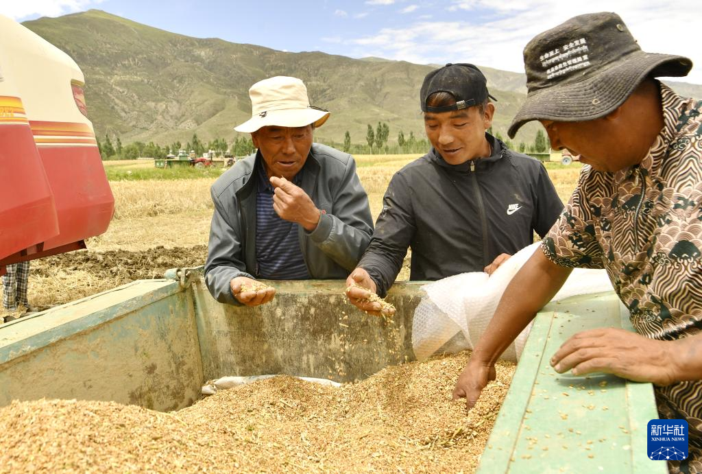 7月31日,山南市扎囊縣扎其鄉朗賽嶺村村民檢查青稞品質。新華社記者 張汝鋒 攝