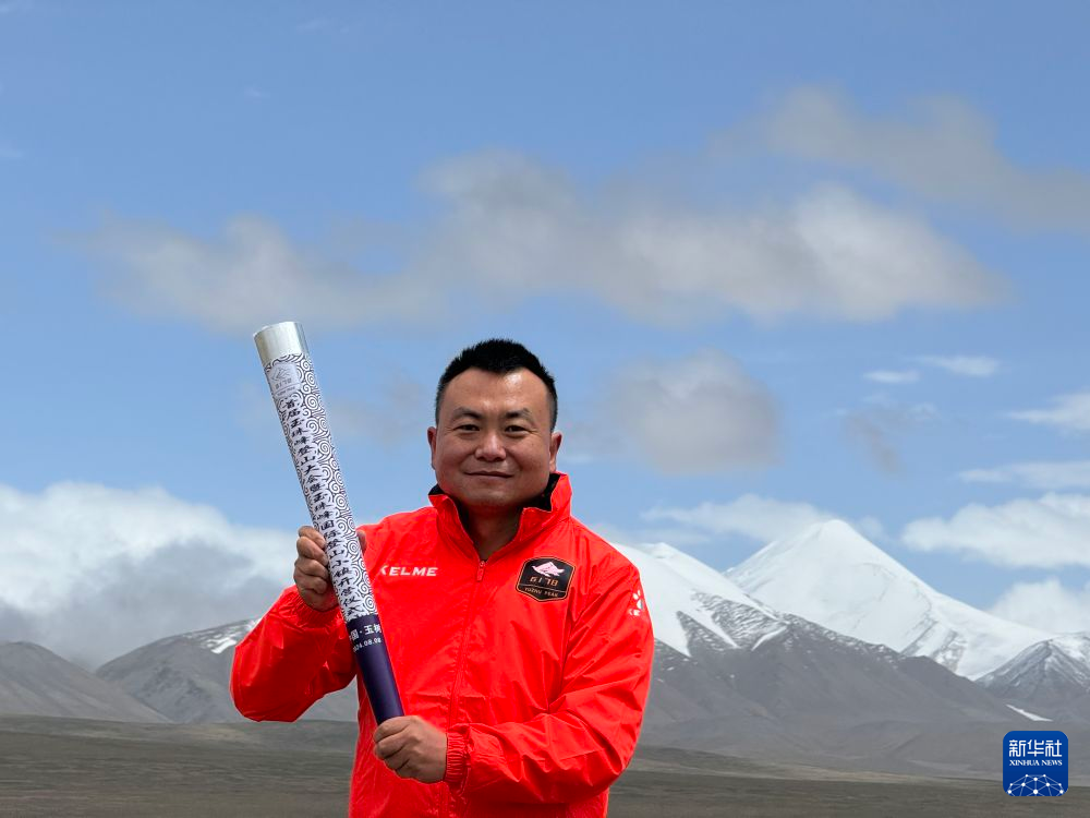 8月8日,馬嘯在玉珠峰登山小鎮。新華社發(曲麻萊縣委宣傳部 供圖)