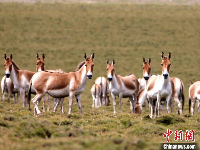 圖為成群藏野驢在草原上駐足。才新木加 攝