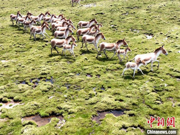 圖為成群藏野驢結(jié)伴而行。才新木加 攝