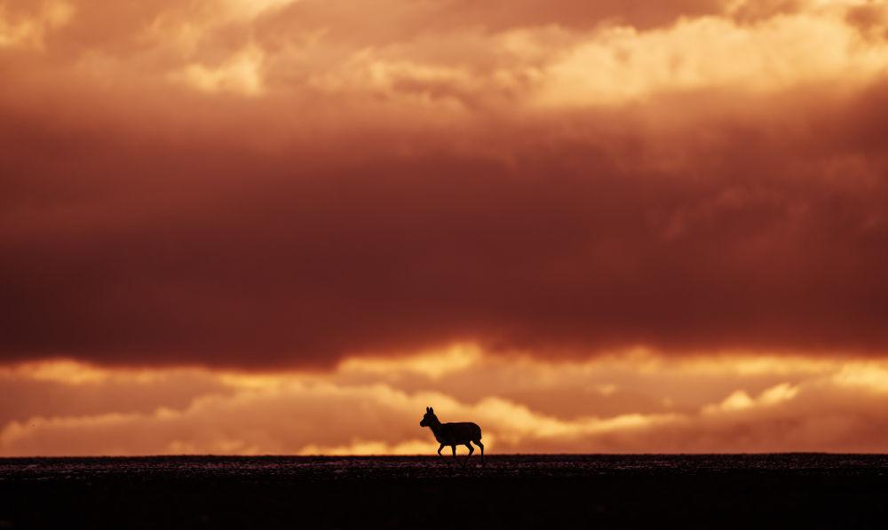 6月13日傍晚在藏北羌塘國(guó)家級(jí)自然保護(hù)區(qū)拍攝的一只藏羚羊。新華社記者 費(fèi)茂華 攝