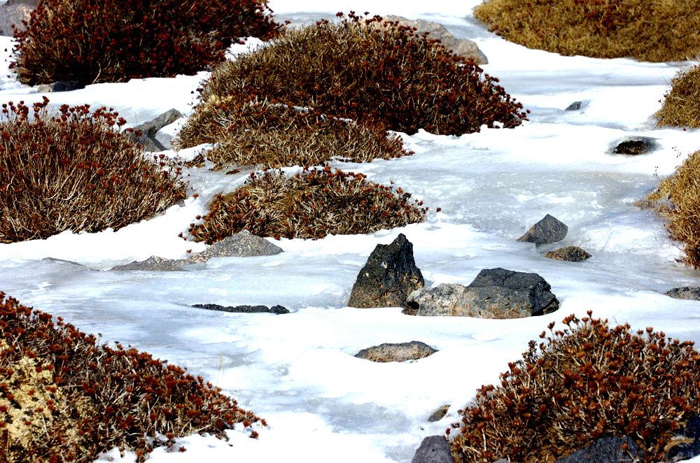 跟隨冰川融水的足跡,我們踏上了一段探索之旅,最終發(fā)現(xiàn)了一片生命的奇跡——墊狀植物。