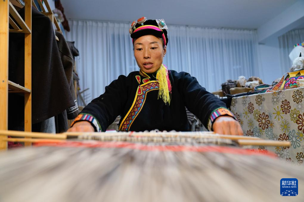 2016年,她創立能卡曼紡織手作工作室,利用傳統技藝,結合創新設計,制作背包、圍巾、腰帶等手工藝品,并參加集市、開展線上銷售。隨著訂單變多,能卡曼把訂單分享給村里的婦女,大家在農閑時也多了一份收入。目前已有50余名婦女在能卡曼的帶動下實現靈活就業,人均年收入3千至3萬元不等。