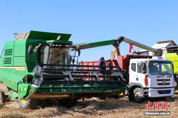圖為小麥收割現場。中新社記者 薛蒂 攝
