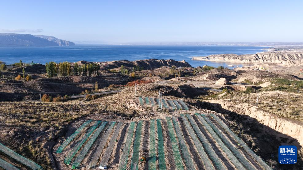 10月17日拍攝于青海省海南藏族自治州共和縣的恰恰灣沙灘旅游度假村(無人機照片)。新華社記者 齊芷玥 攝