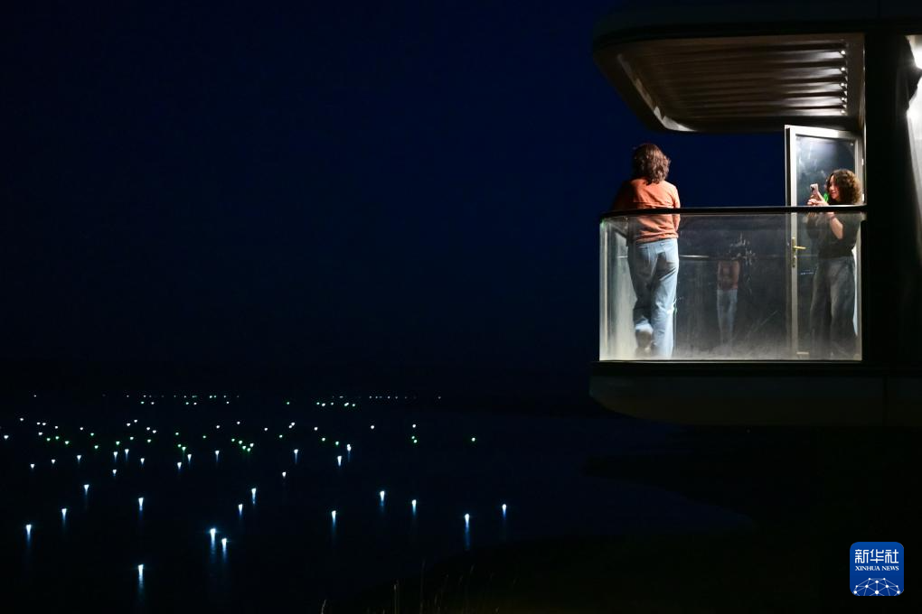 10月17日,在青海省海南藏族自治州共和縣恰恰灣沙灘旅游度假村,游客在民宿內拍照。新華社記者 齊芷玥 攝