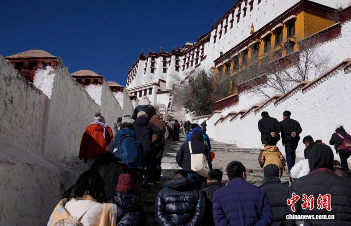 中國藏族網通訊 1月7日,游客在布達拉宮參觀游覽。當前正值第八輪“冬游西藏”市場促進活動開展期間,西藏推出包括布達拉宮在內的多家景區免門票優惠,吸引游客前來參觀。中新社記者 李林 攝