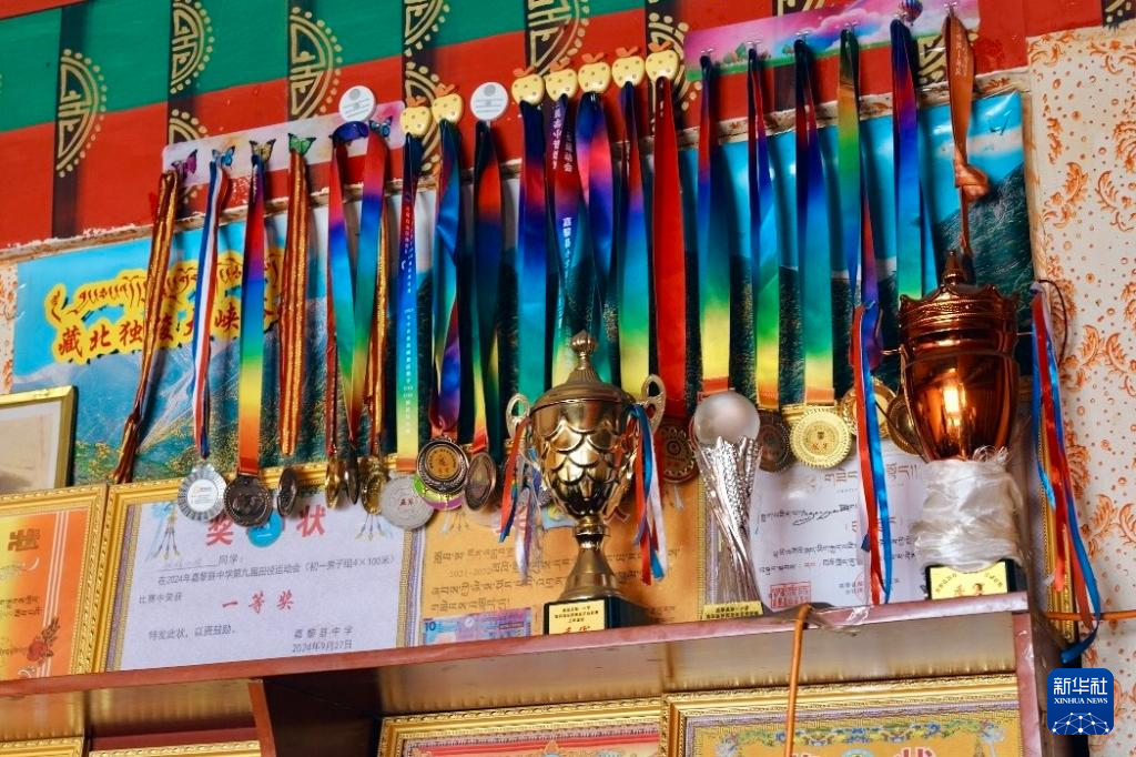 如今,頓珠嘉措家里的柜子上擺滿了他和哥哥獲得的獎(jiǎng)杯和獎(jiǎng)牌,哥哥被選入那曲市青少年滿天星訓(xùn)練營,有更多的機(jī)會(huì)到外面開拓眼界、學(xué)習(xí)提升,也成為了頓珠嘉措的榜樣。正在上初二的他,也有了自己的目標(biāo),希望能考上區(qū)外的大學(xué),當(dāng)一名體育老師,服務(wù)家鄉(xiāng)。