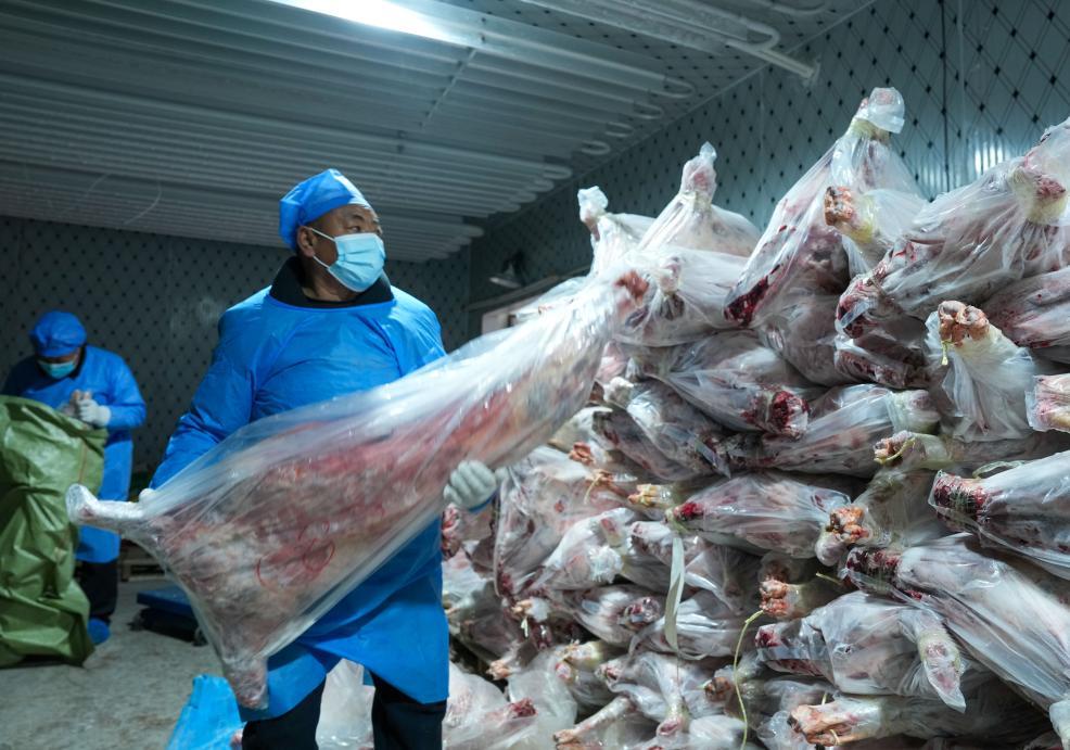 在山下,現(xiàn)代化畜牧工廠里,村民們有條不紊地將鮮嫩的牛羊肉包裝、裝箱,這些帶著唐古拉山氣息的美味,通過(guò)物流網(wǎng)絡(luò)發(fā)往全國(guó)各地。