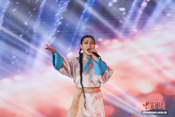 圖為四川籍歌手蘭卡措演唱歌曲《雪域仙女情》 。中新社記者 馬銘言 攝