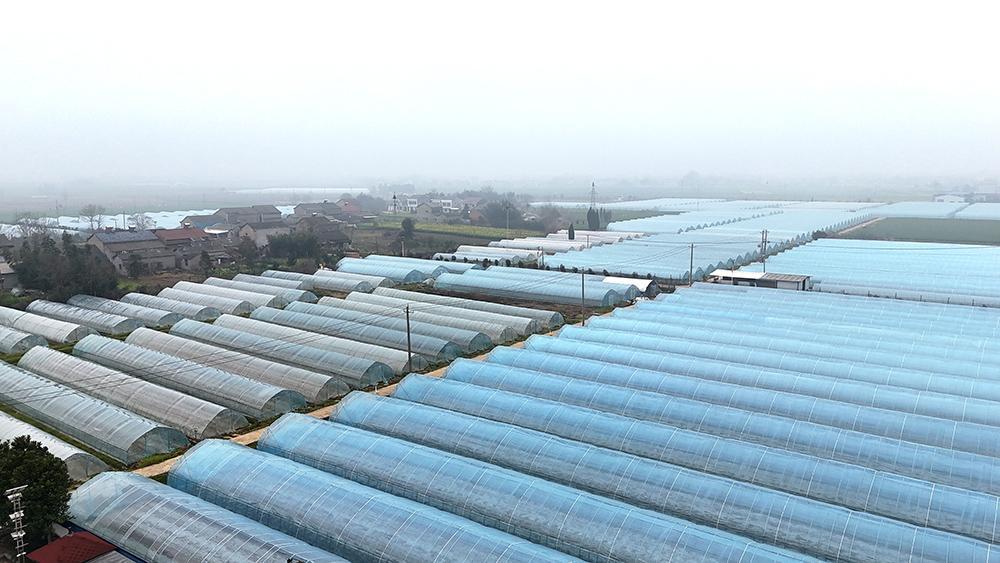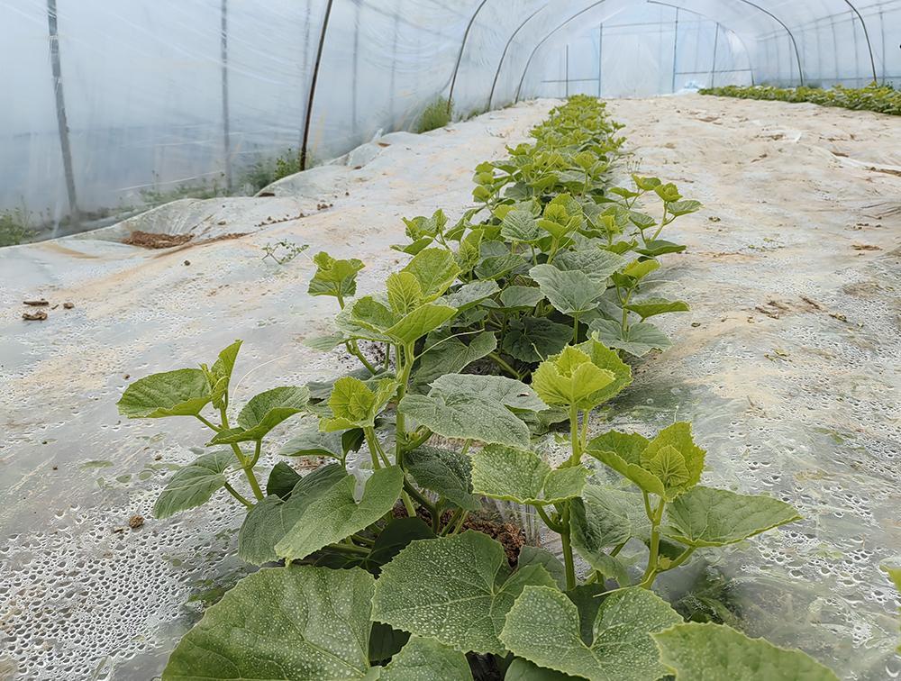 初春時節,萬物復蘇。湖北荊州松滋市紙廠河鎮城址山村產業發展聯合社果蔬基地大棚內,一行行瓜苗青翠欲滴,向壟側爬出藤蔓。