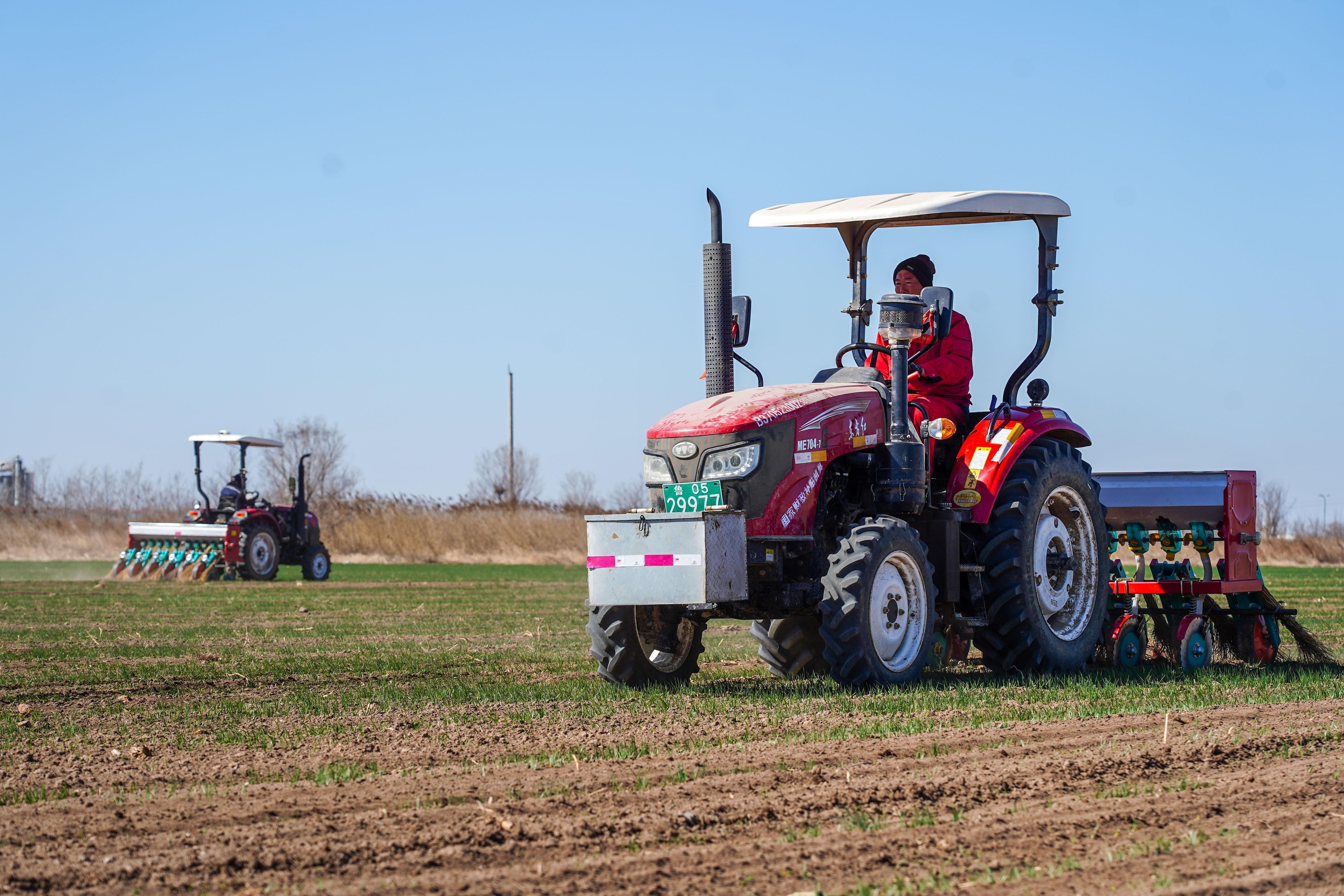 山東省黃河三角洲農(nóng)業(yè)高新技術(shù)產(chǎn)業(yè)示范區(qū),工作人員搶抓農(nóng)時開展春種,田間地頭一片忙碌。新華社記者朱崢 攝