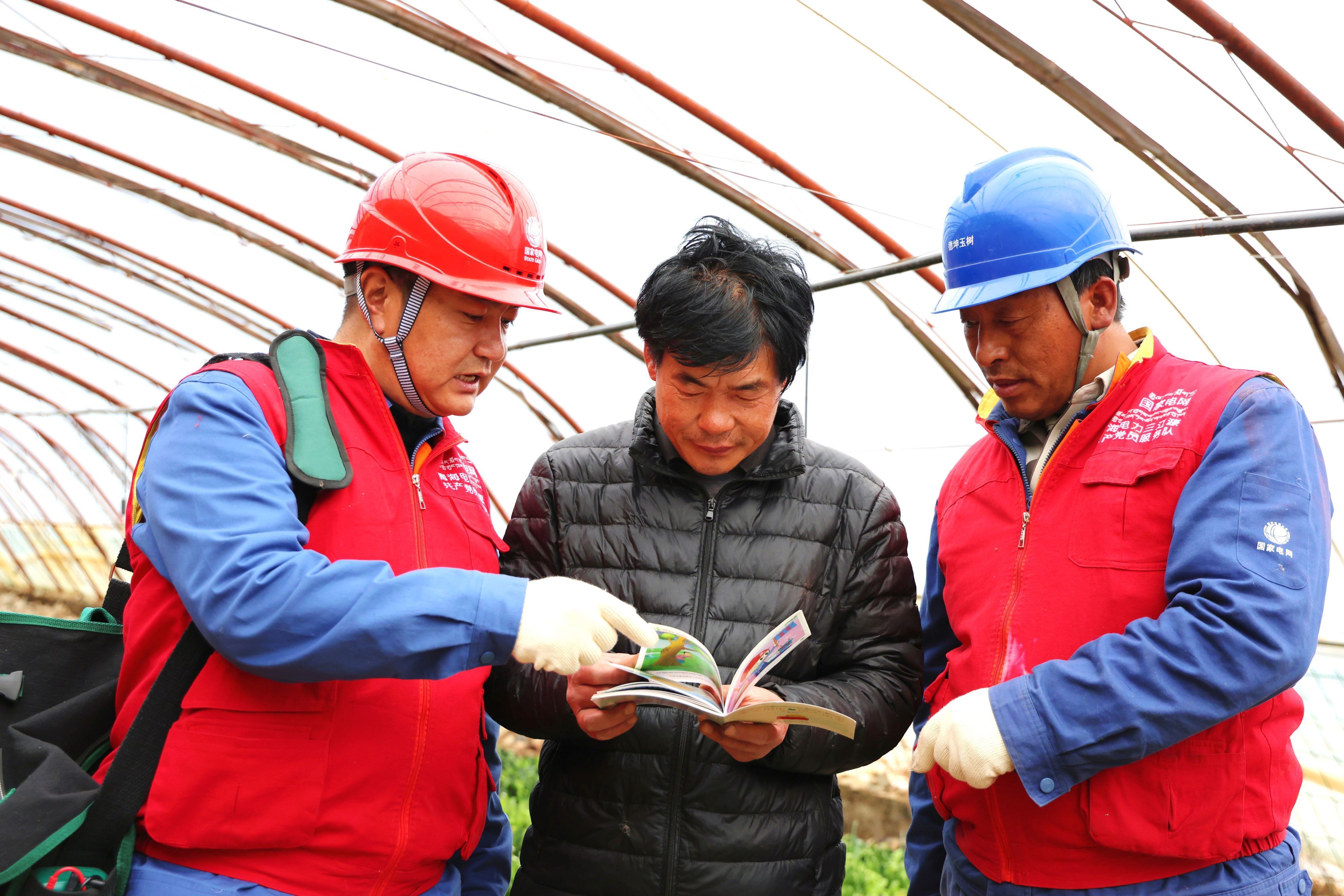 國(guó)網(wǎng)玉樹(shù)市供電公司工作人員為趙金龍送去用電新政策。