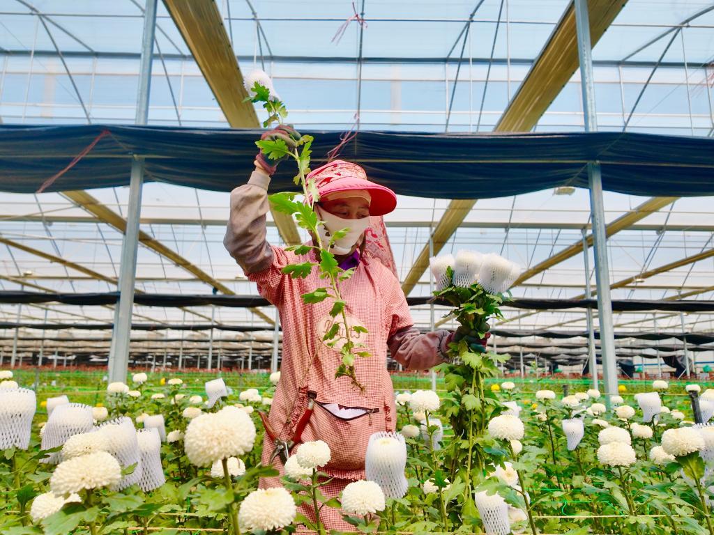 蓬勃發展的鮮花產業還催生助農增收的聯農帶農機制,基地附近的村民不僅可以在基地里務工,還能通過流轉土地收取租金、參與農民合作社分紅。“現在每個月采花收入能有3000元左右,加上土地租金每年總收入有5萬多元。”花農金麗純說,越來越多的村民選擇到花卉基地上班,實現家門口就業。