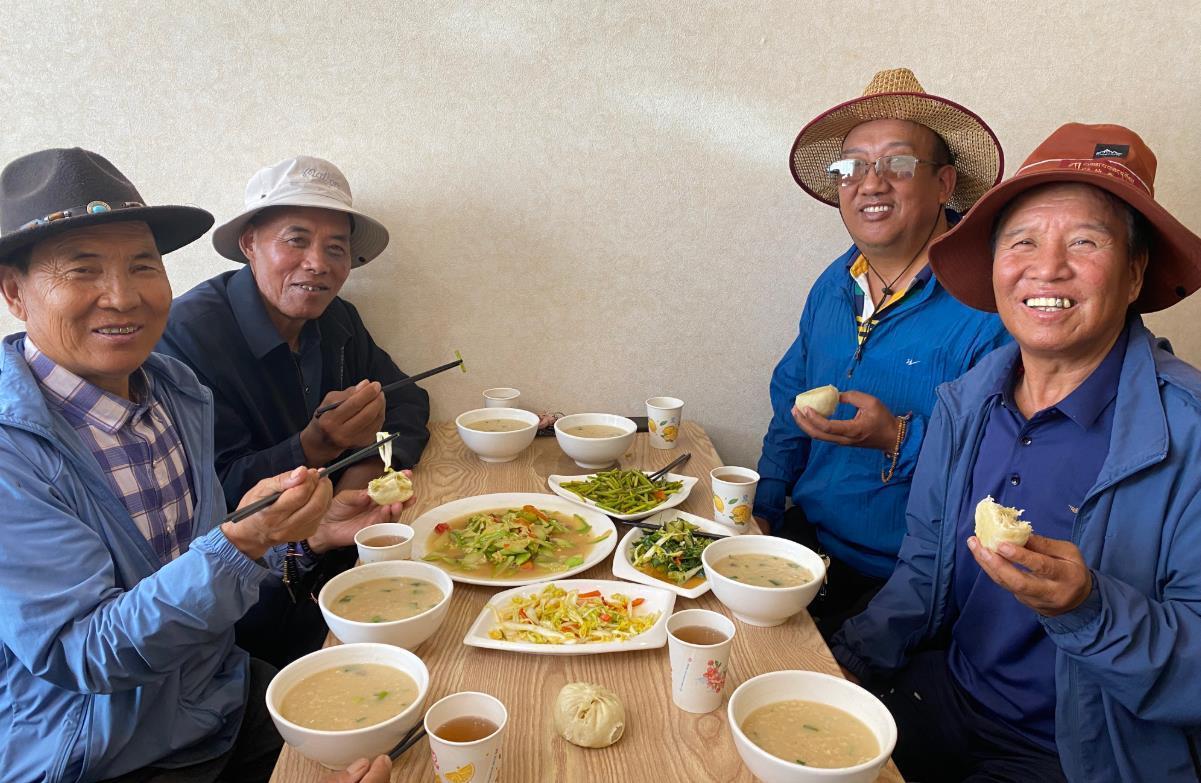 藏族老人夏吾才讓剛喝完一碗麥仁粥,又盛了一碗。他邊喝邊忍不住感嘆:“我兒女不在身邊,自己做飯麻煩得很,現(xiàn)在每天能和老伙計們一起吃熱乎飯,心里別提多舒坦了!”說罷,他放下筷子,抹了抹嘴角,臉上滿是滿足。