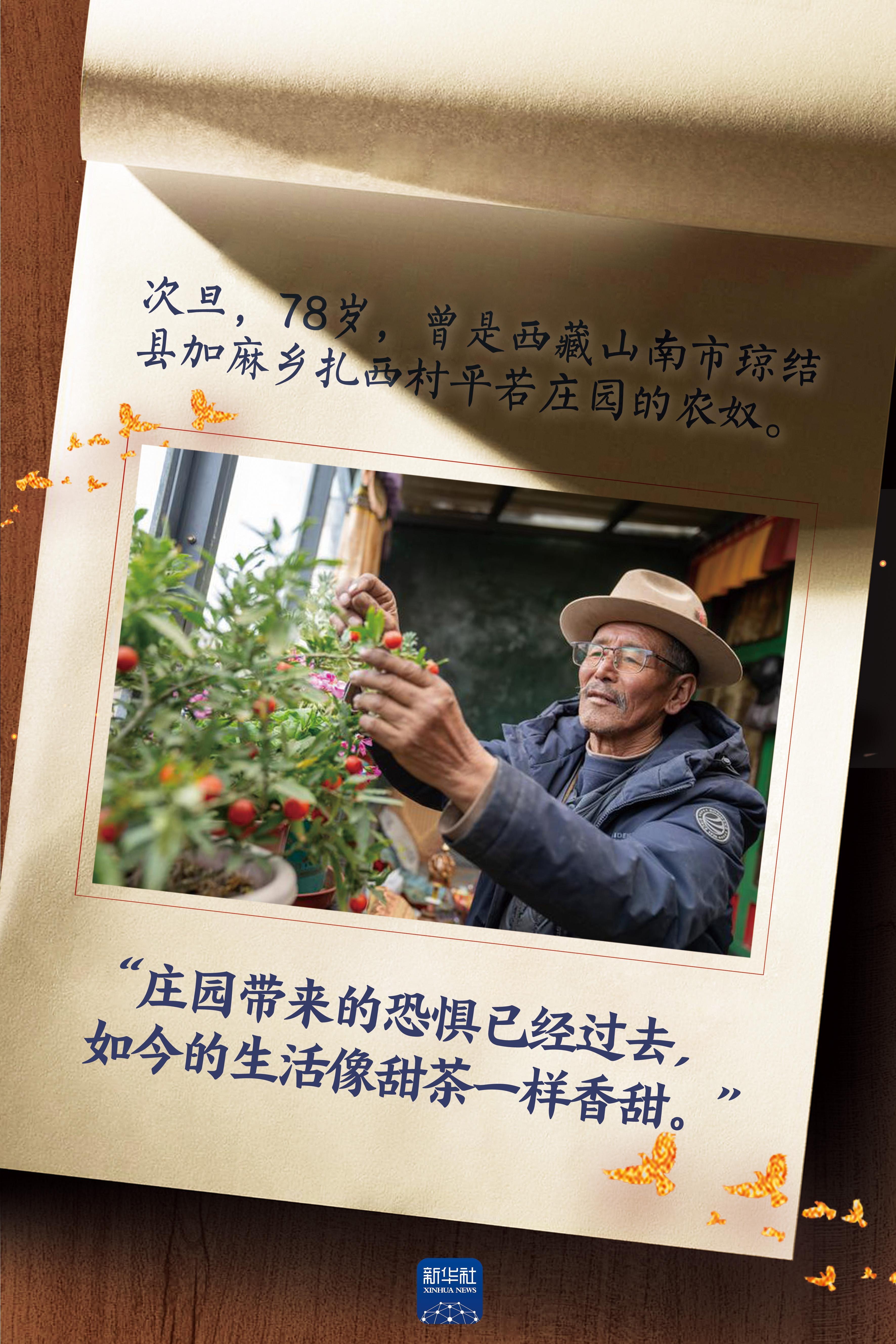 從昏暗羊圈到藏式二層小樓,次旦家的變化天翻地覆?!扒f園帶來的恐懼已經過去,現在兒女都長大成人,我有養老金、有醫保,沒有后顧之憂。如今我們的生活像甜茶一樣香甜。”次旦說。(參與采寫:旦增尼瑪曲珠)